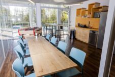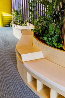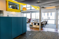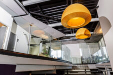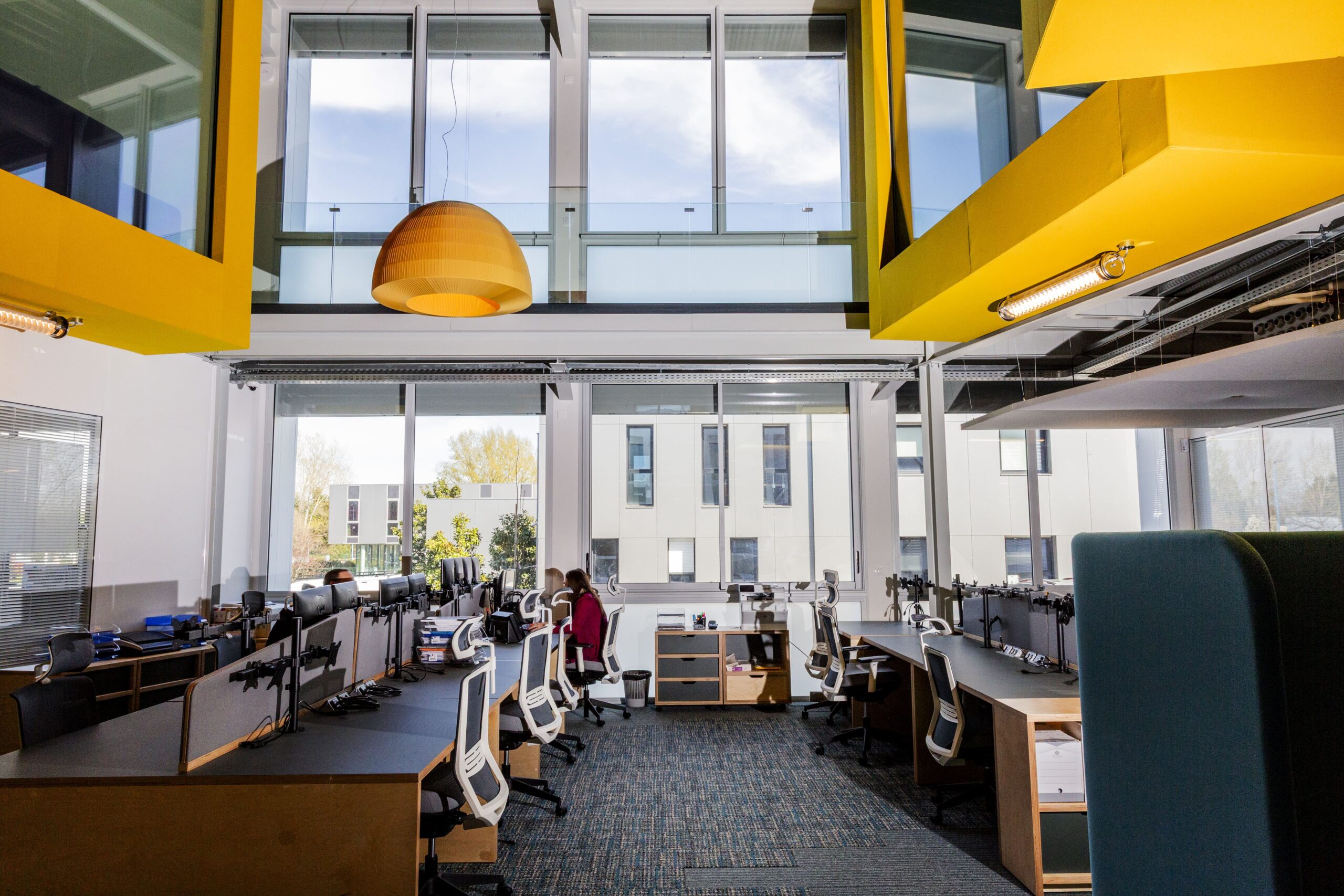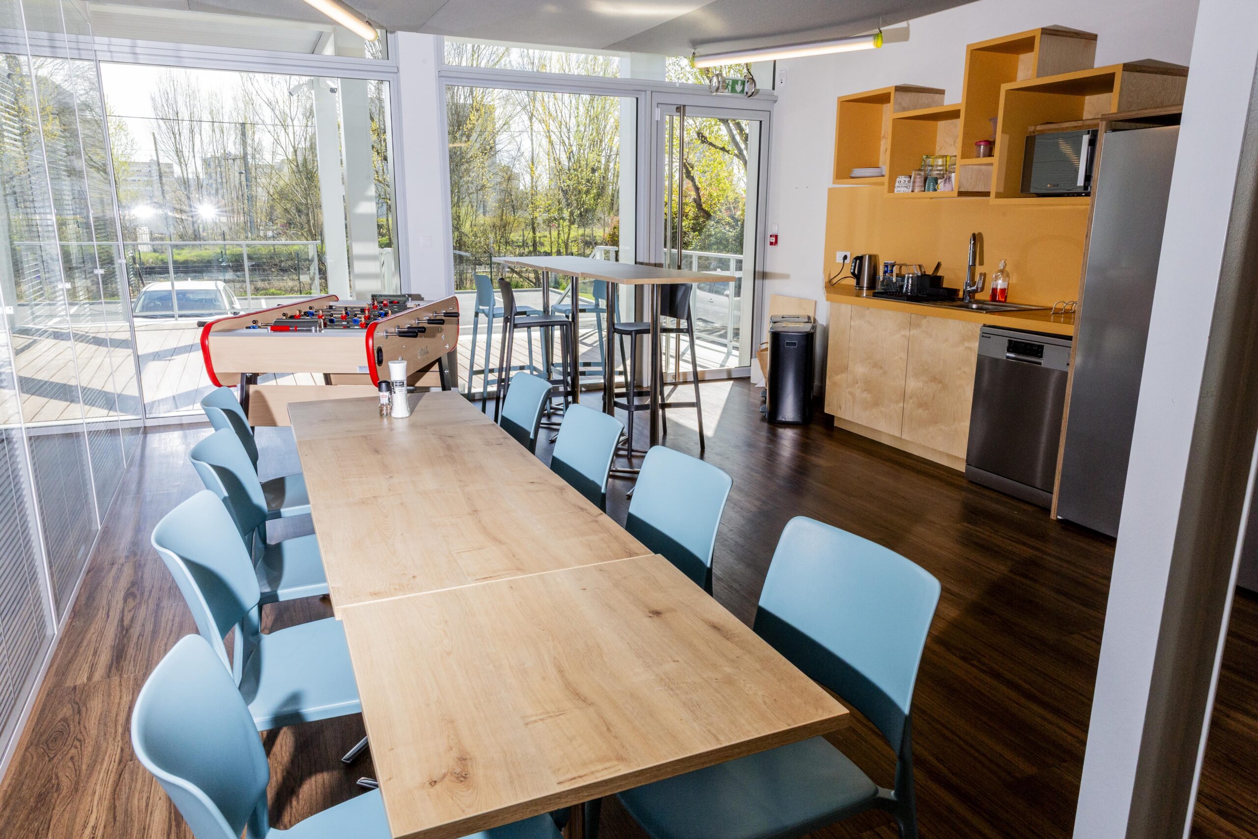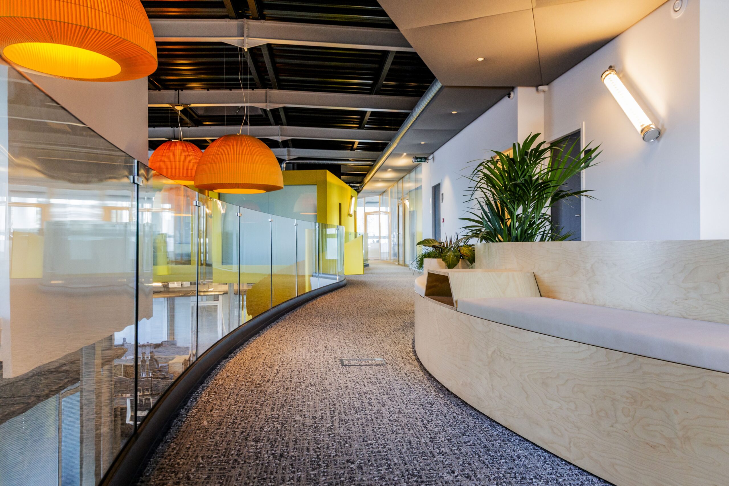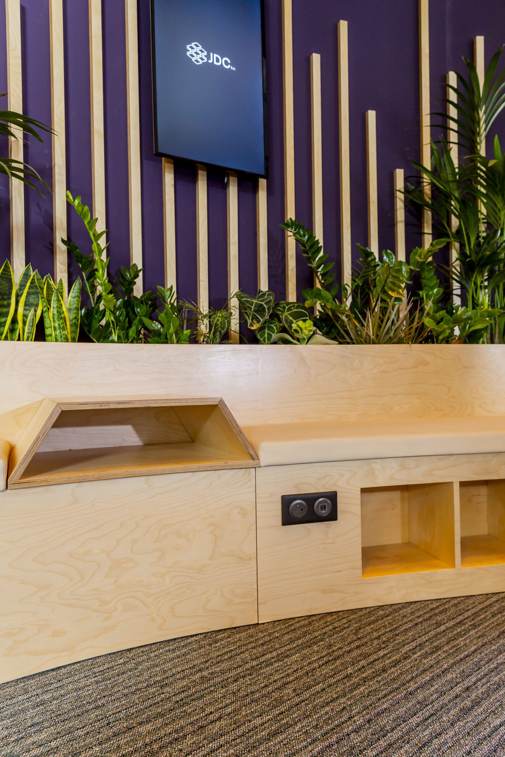 Un espace ingénieusement pensé Le nouveau quartier général de JDC affirme une dualité m aîtrisée entre confort et technologie. L’architecture industrielle, marquée par l’ossature métallique et les câblages apparents, se transforme en un véritable nid douillet dans une ambiance résolument moderne. La douceur apportée par la moquette, le bois et les courbes du mobilier contribue à faire de cet espace, un véritable cocon propice au bien-être et à la créativité des équipes