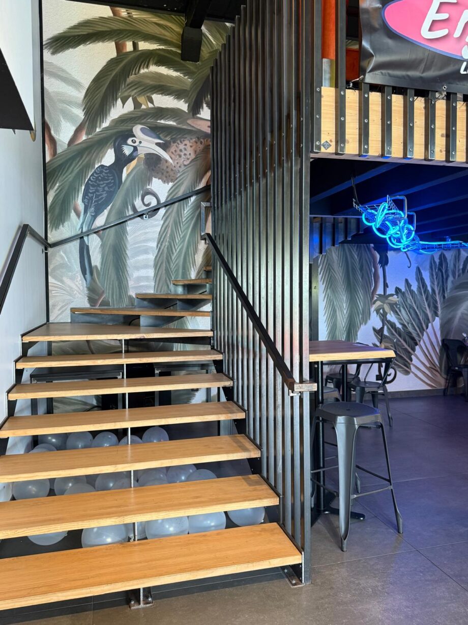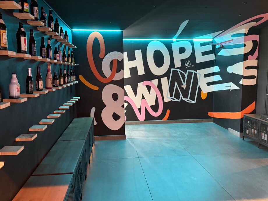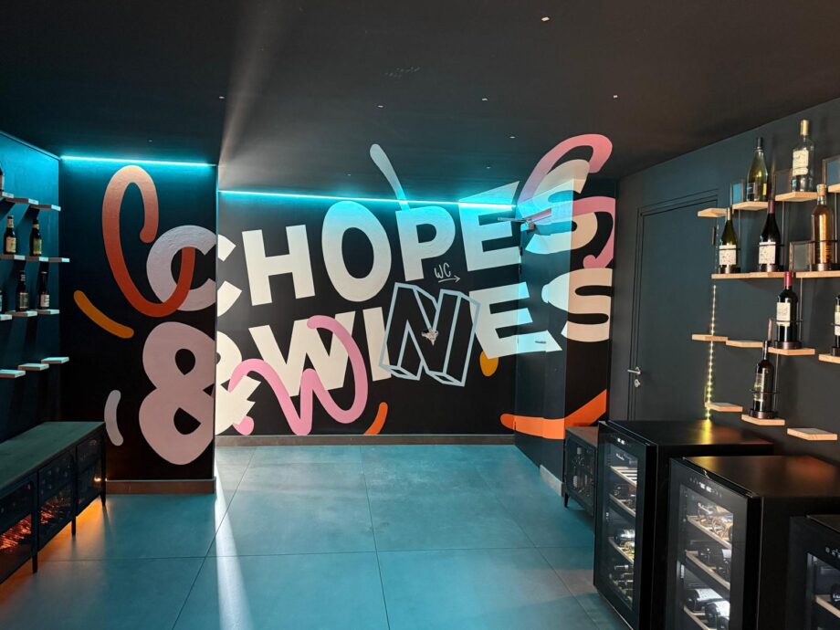 L’éclairage doux guide le regard jusqu’à la cave à bières et à vins, où une fresque en street art anamorphique donne le ton. Un lieu de caractère, authentique et moderne, pensé pour durer et fédérer.
