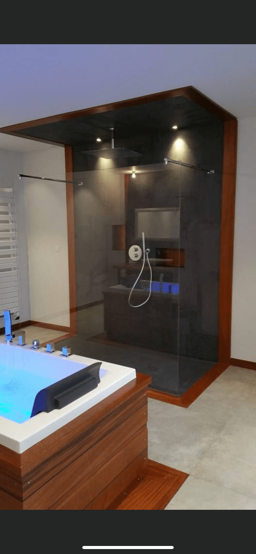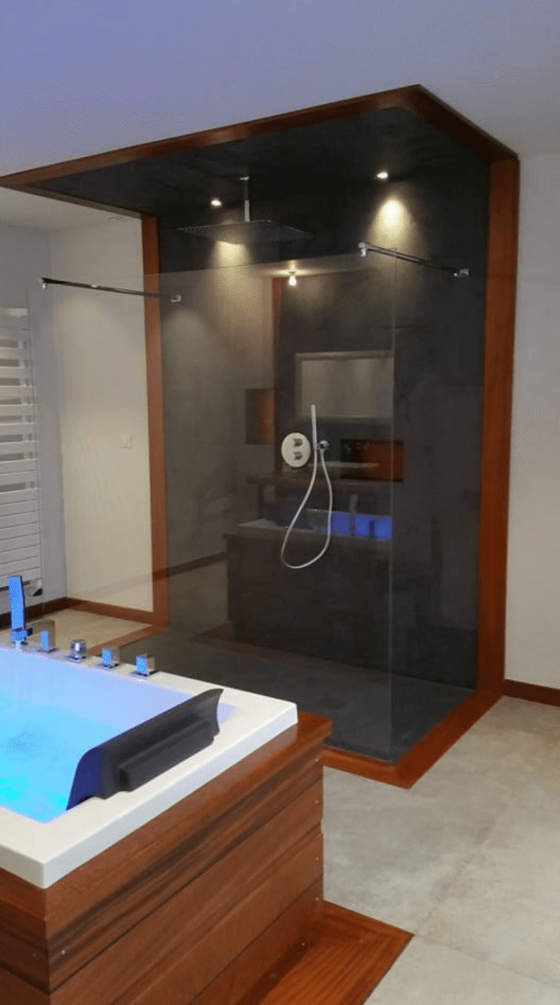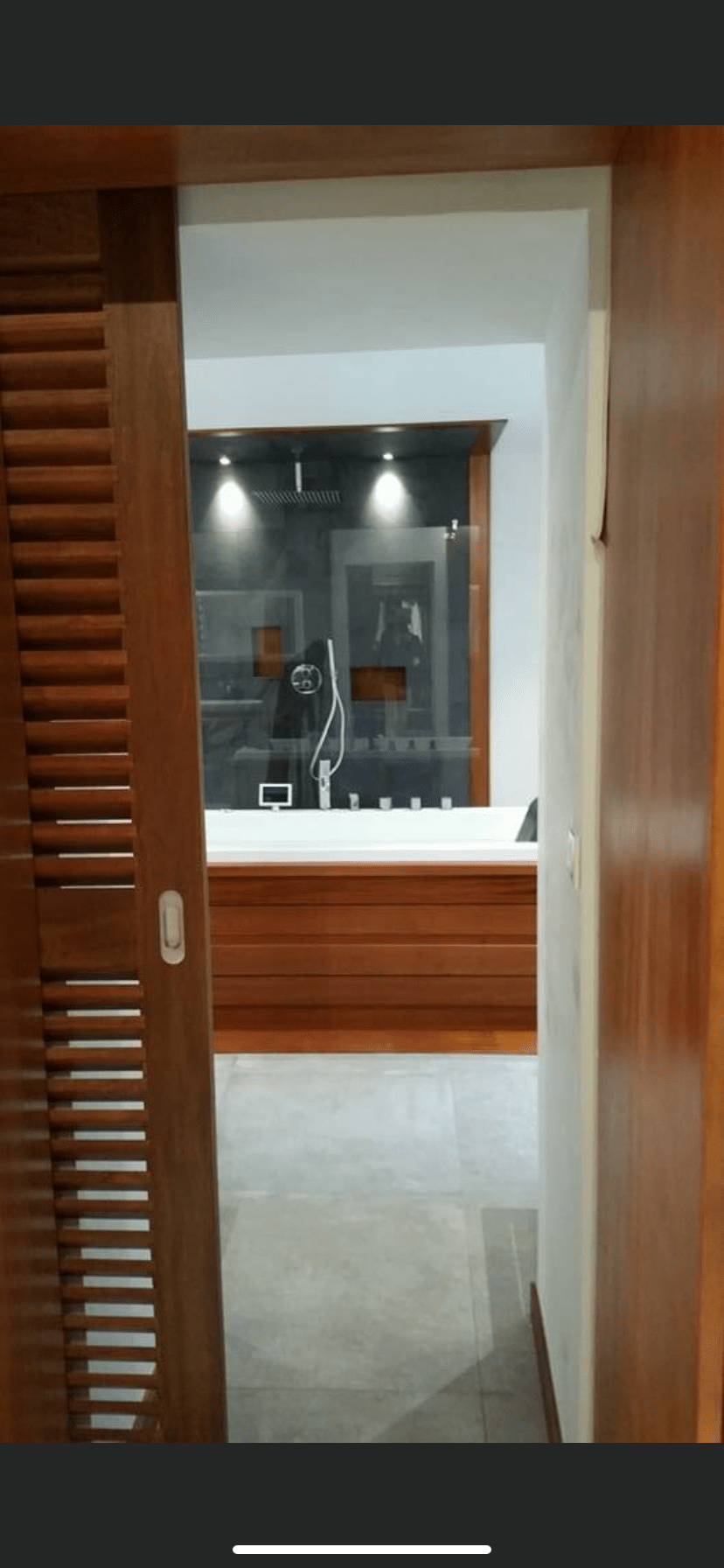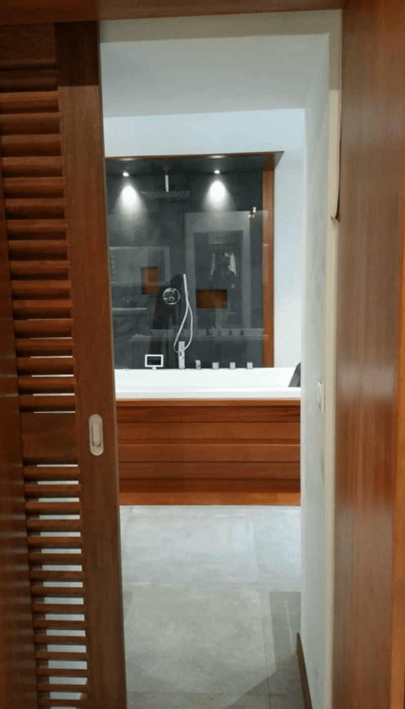 La salle de billard anglais conserve ses moulures anciennes, tandis que la salle de bain devient un lieu de bien-être total, avec balnéo et mobilier en teck.