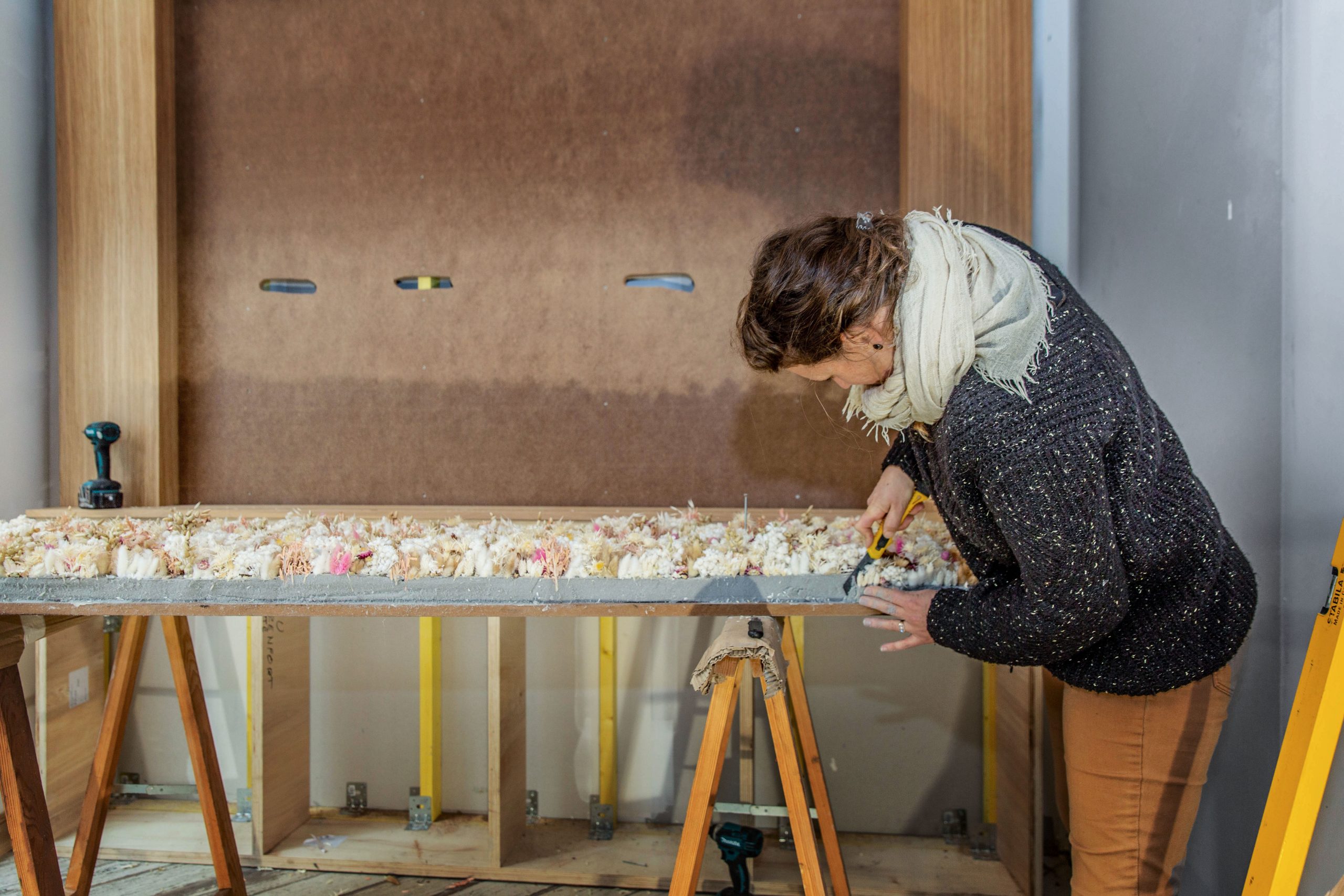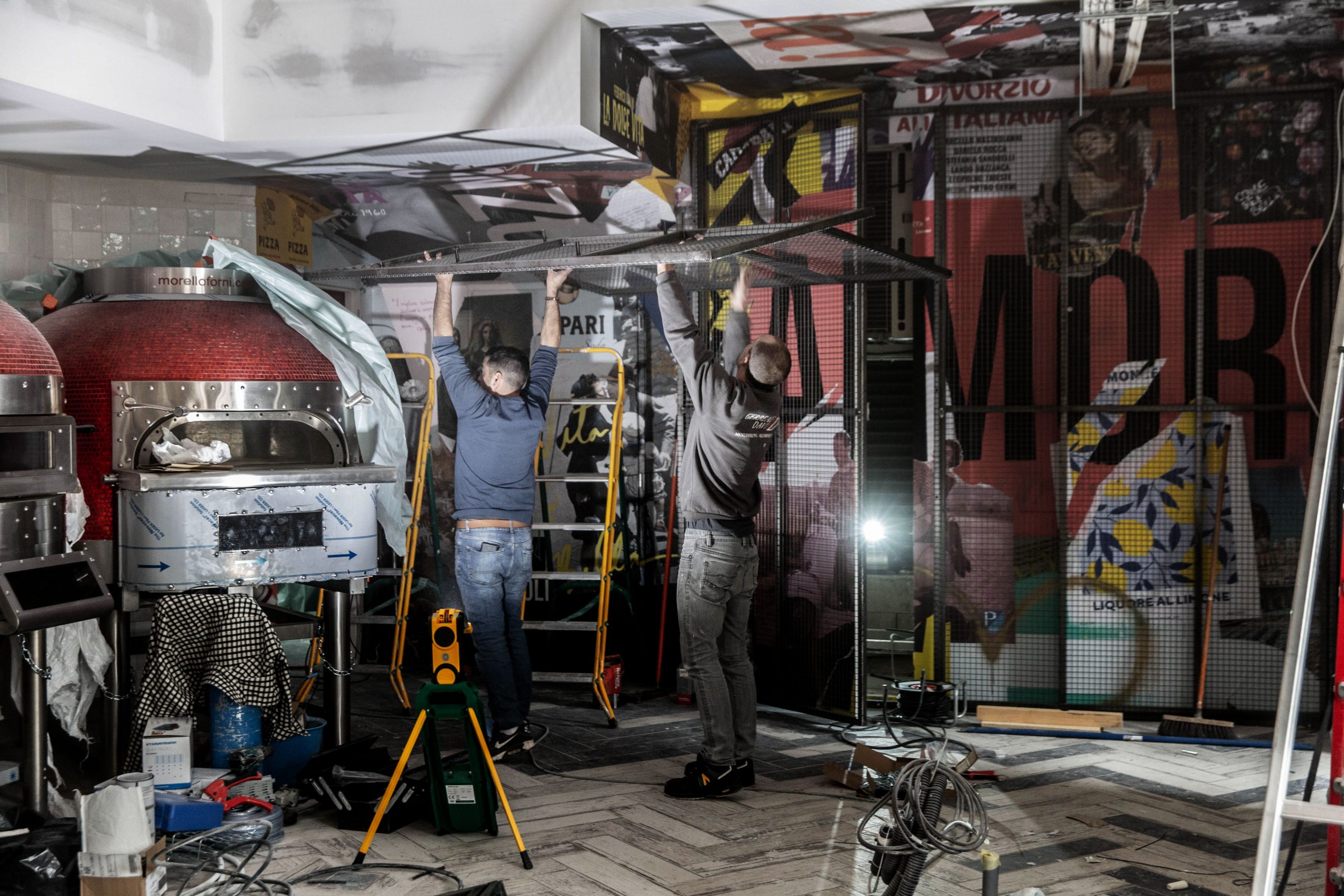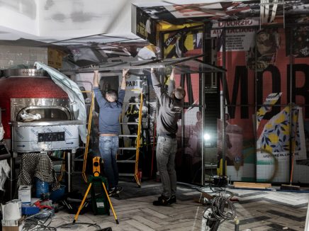 Les plafonds de fleurs séchées côtoient des murs d’affiches déchirées recouverts de grilles métalliques patinées.