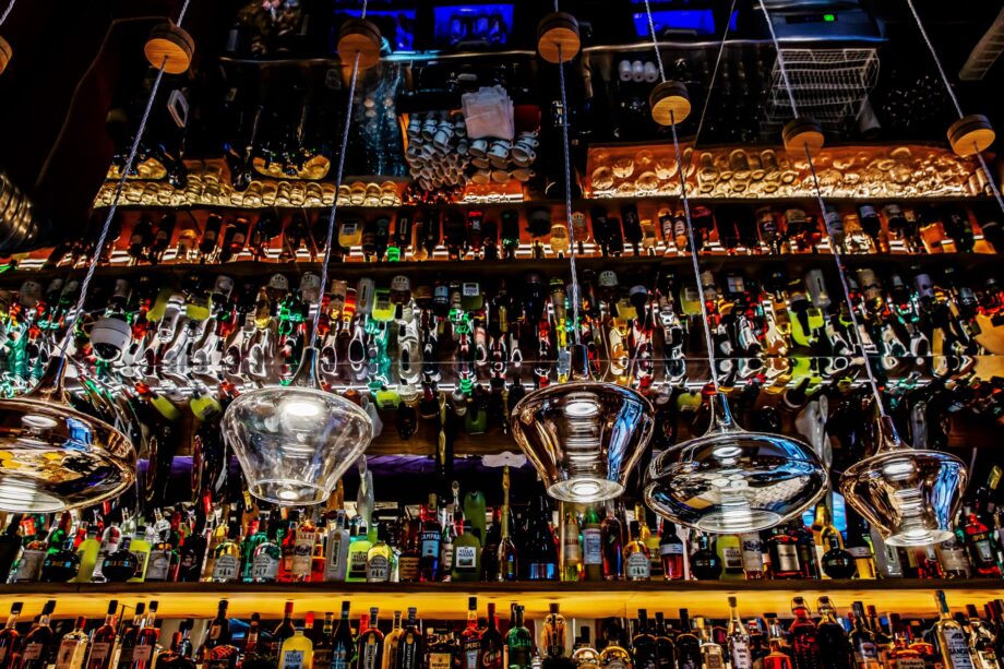 Le marbre s’encastre dans le bois, les voûtes miroirs des bars adoucissent les lignes minérales.
