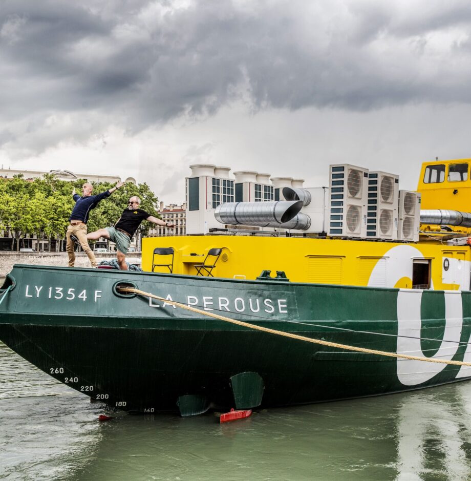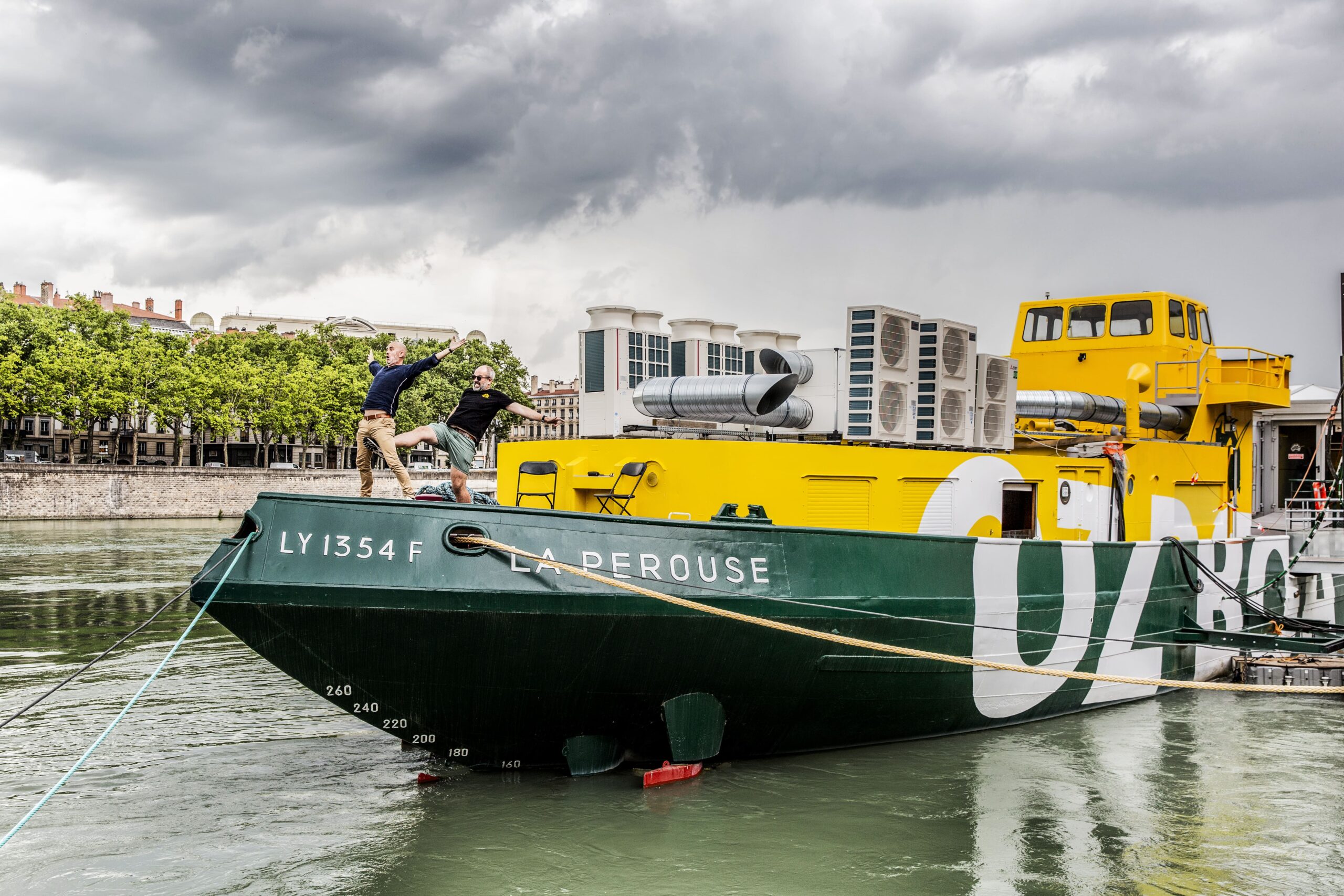 Seconde signature pour l’agence d'architecture David Dalidec d’un bateau pour le groupe Café OZ. Après le succès du OZ BOAT Bordeaux, nous voici reparti dans l’aventure navale avec la réinterprétation du bateau « la Pérouse » à Lyon. Cet ancien pétrolier de 83 m de long datant de 1958 avait déjà été transformé en bateau événementiel début 2000 sous l’appelation « la plateforme ».