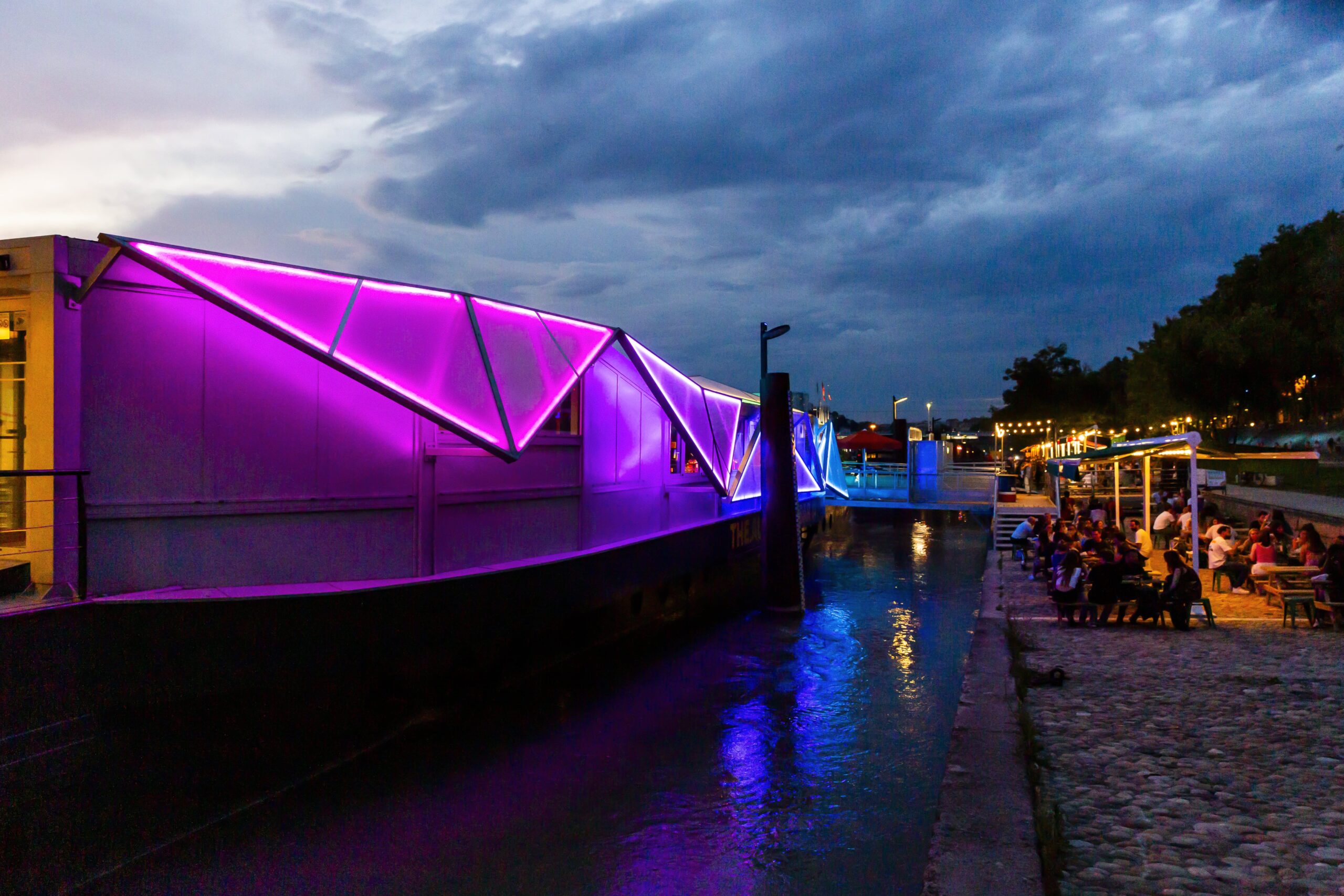 La cave à bières avec sa cabine DJ domine le Dance Floor, une visite dans les wc s’impose avec ses mosaïques en mode Drag Queen et ses petites surprises, une terrasse de plus de 300 places vous permettra également de profiter de la douceur des quais.