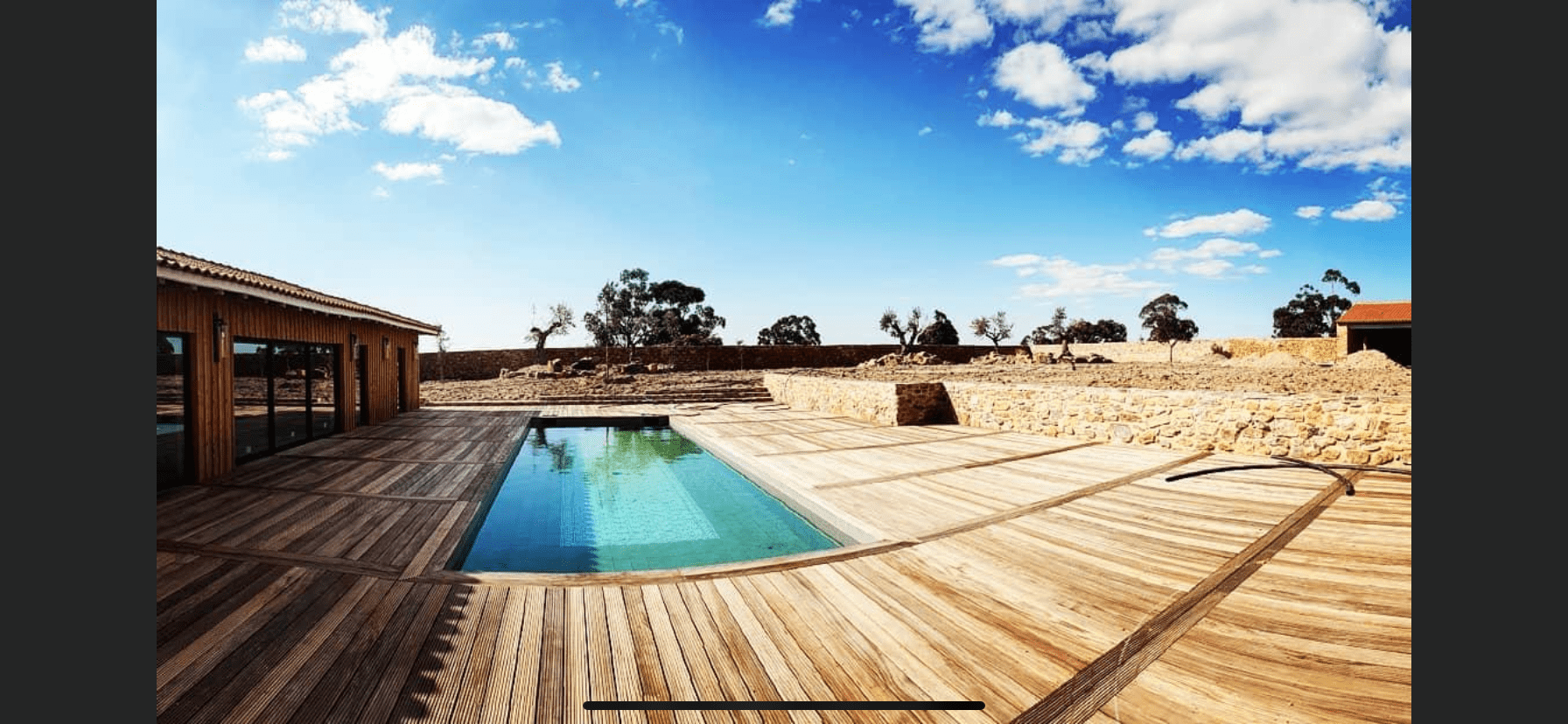 Les extérieurs, eux, appellent à la déconnexion : piscine en zellige cachée parmi les oliviers, vue sur les collines portugaises, et parc dessiné pour épouser la nature existante.