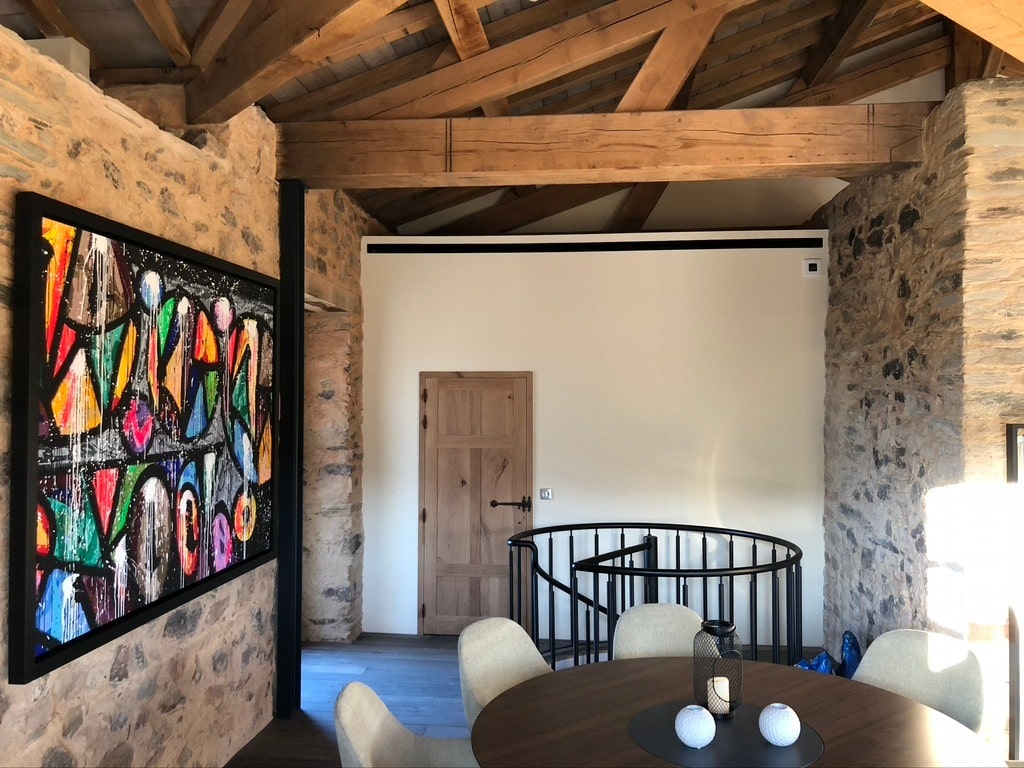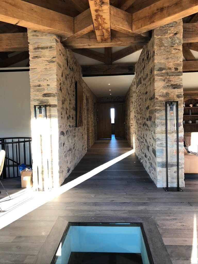 Conserver ce patrimoine historique et le projeter avec toute la technologie et le confort du 21ème siècle. L’esthétique s’articule autour d’un subtil mélange entre pierre brute, vieux bois et design épuré.