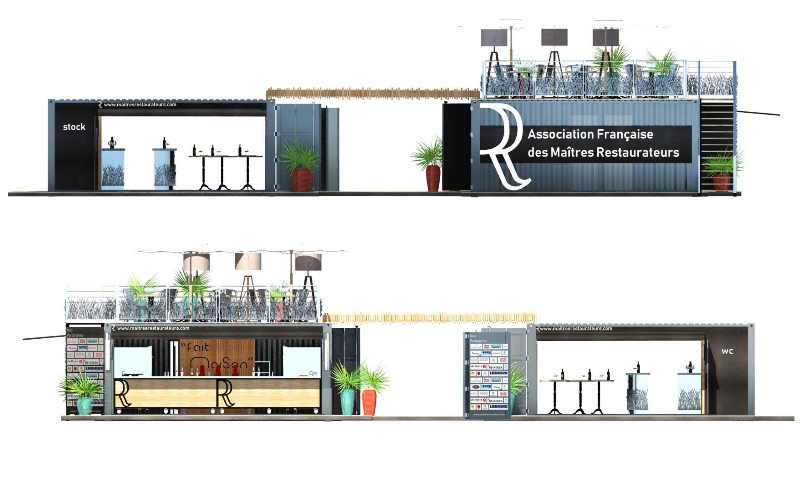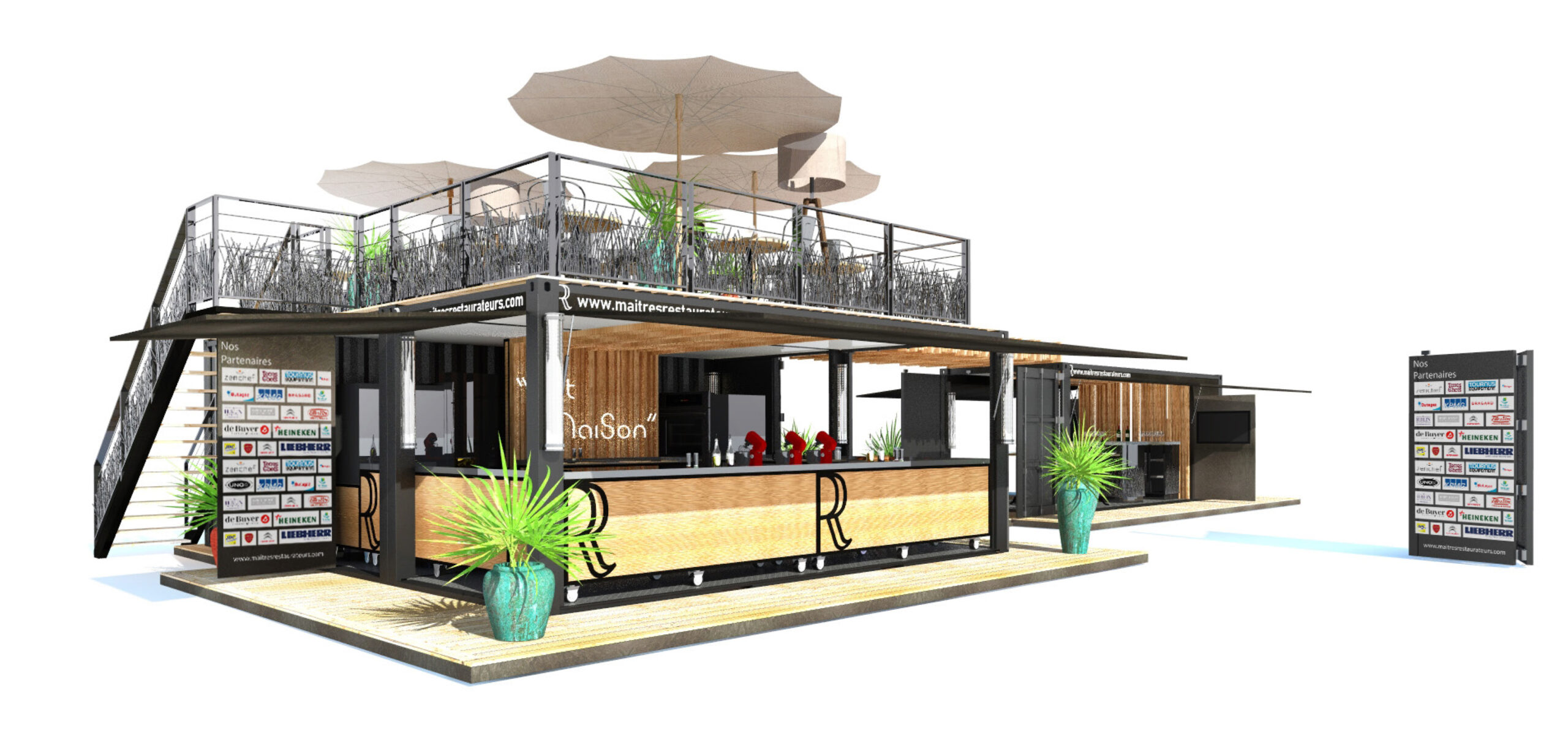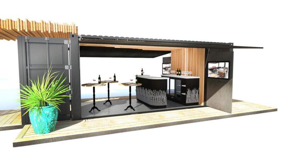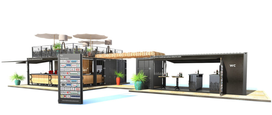 Créer un restaurant en associant 4 conteneurs de façon à obtenir une structure modulaire et transportable, capable de s’implanter sur les différents événements nationaux ou régionaux dédiés à la gastronomie française.