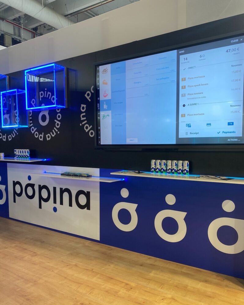 Quand la marque Popina, spécialiste des caisses enregistreuses nouvelle génération, nous sollicite pour la création de son stand salon, le brief est clair :
