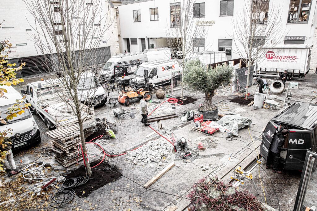Sur la terrasse du restaurant Monzu 2 à Bordeaux, l’agence s’est engagée dans une démarche de re-végétalisation avec le groupe Monzu. Pavés déposés, plantations d’arbres pour créer de l’ombre, haie paysagère pour structurer l’espace et rafraîchir l’air ambiant : un geste écologique au cœur de l’expérience architecturale.